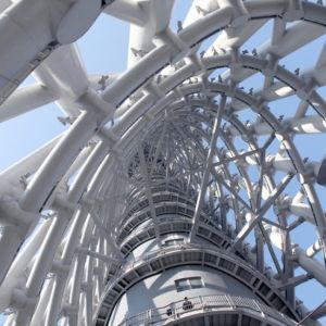 廣州塔由一座454米的塔身和156米的鋼結構桅桿組成,總高610米。塔身由鋼結構外框筒和鋼筋混凝土核心筒構成。內外框筒通過樓層結構相連,但樓層缺失一半。焊接工作是廣州塔項目高難度工作之一,鋼結構外筒均采用鋼管構件,高空節(jié)點均為等強焊接連接。從保證焊接質量、提高焊接功效、減少焊